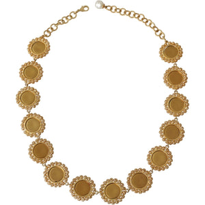 Dolce & Gabbana Red Purple Crystal Floral Chain Statement Gold Brass Necklace