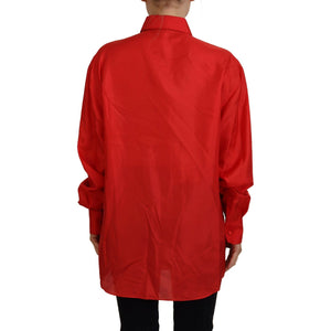 Dolce & Gabbana Red Silk Collared Long Sleeves Dress Shirt Top