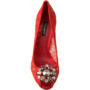 Dolce & Gabbana Red Taormina Lace Crystal Heels Pumps Shoes
