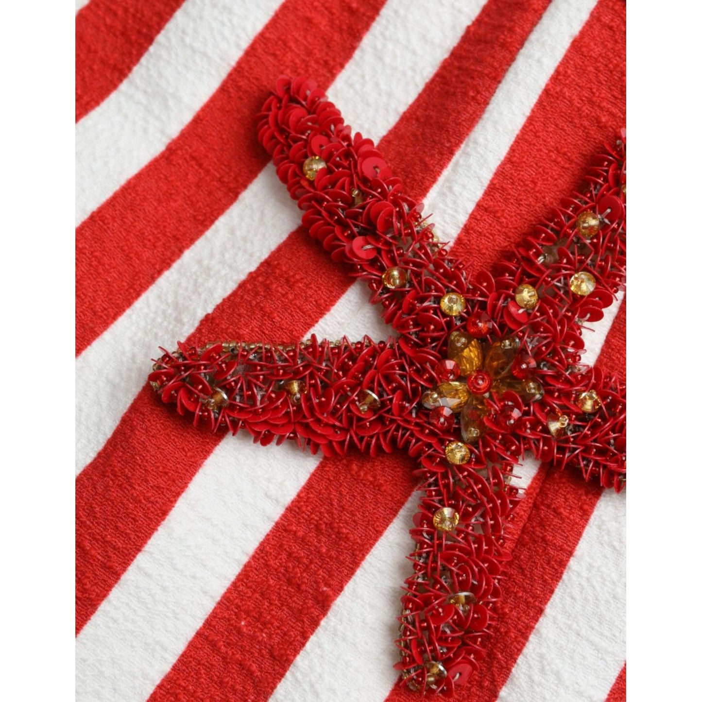 Dolce & Gabbana Red White Floral Sleeveless Sheath Midi Dress