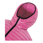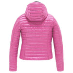 Refrigiwear light jacket in technical fabric, pink in colour, with elasticated hood and genuine duck down padding. Open side pockets and front zip fastening.