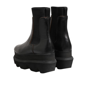 Sacai Black Chelsea Leather Pull On Women Ankle Boots Shoes