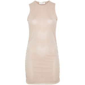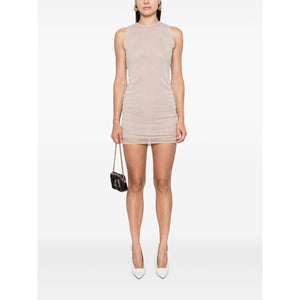 beige tulle semi-sheer construction ruched detailing round neck sleeveless thigh-length Stretch tulle short dress Size and Fit - This piece fits true to size. We recommend you get your regular size. Model is 1,75m / 5ft 8in wearing size 36 (FR)