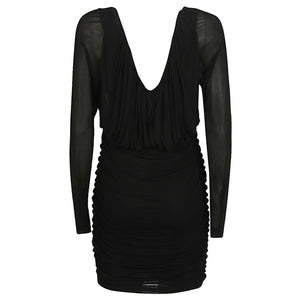 Abito corto a maniche lunghe, ampio scollo a V frontale e sulla schiena, design arricciato. Short jersey dress Size and Fit - This piece fits true to size. We recommend you get your regular size. Model is 1,75m / 5ft 8in wearing size 36 (FR)