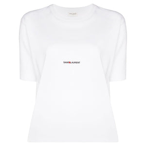 White, black Made from cotton Ribbed-knit crew neck Short sleeves Black logo print at front Straight hem Crafted in Italy Logo cotton t-shirt Size and Fit - This piece fits true to size. We recommend you get your regular size. Model is 1,75m / 5ft 8in wearing size S