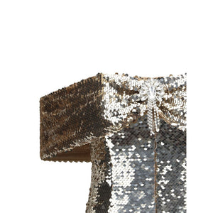 Self-Portrait’s mini Dress is a bold and sophisticated piece, featuring exposed shoulders that give it a sensual and modern touch. The hidden zipper and hook-and-eye closure on the back panel ensures a flawless fit while keeping the design sleek and minimalist. The design of the dress is embellished with mirrored sequins applied evenly over the entire surface, creating a bright and sparkling effect that catches the eye.