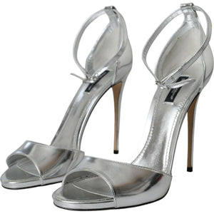 Dolce & Gabbana Silver KEIRA Leather Heels Sandals Shoes