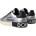 Dolce & Gabbana Silver Portofino Calf Leather Sneakers Men Shoes