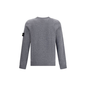 Wool Sweater by Stone Island featuring a ribbed crew neck, a logo patch applied to the left sleeve and ribbed trim at the cuffs and hem. The monochrome design enhances the clean lines of the garment, perfect for a casual yet polished look.