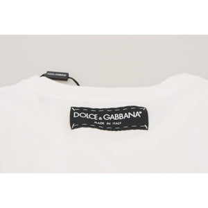 Absolutely stunning, 100% Authentic, brand new with tags Dolce & Gabbana iconic prints white cotton textured designer T-shirt features a round neck with welt finishing, a slim fit, a print to the front, a straight hem and short sleeves.