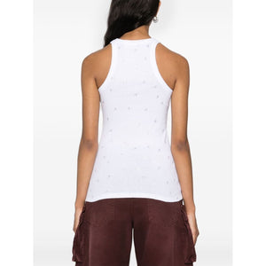 white cotton ribbed detailing all-over rhinestone logo-lettering round neck sleeveless straight hem Allover logo cotton tank top Size and Fit - This piece fits true to size. We recommend you get your regular size. Model is 1,75m / 5ft 8in wearing size 40 (IT)