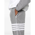 medium grey ripstop texture panelled design signature 4-Bar stripe logo patch to the side signature grosgrain loop tab piped-trim detailing mid-rise elasticated drawstring waistband two side zip-fastening pockets rear zip-fastening pocket tapered leg elasticated ankles 4Bar trackpants Size and Fit - This piece fits true to size. We recommend you get your regular size<br>Model is 1,84m / 6ft 1in wearing size 2 (NUM).