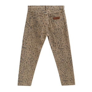 Tom Ford Leopard Print Tapered Beige Jeans. Front button fastening, five pockets, low crotch and wide hips, tapered ankles. Leather logo tag on back pocket.