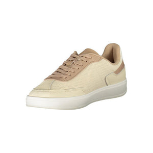 Elevate your streetwear ensemble with the chic aesthetic of Tommy Hilfiger. These sports sneakers redefine casual elegance, with their striking contrast details and iconic embroidery heralding the beloved logo. Crafted for comfort and style, they feature a removable footbed ensuring a personalized fit. The beige palette ensures versatility, while the premium blend of polyester, leather, and polyethylene speaks to enduring quality, straight from CN.