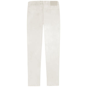Elevate your sartorial standards with these pristine white Alberto trousers by Tramarossa. Expertly crafted in Italy, they blend comfort with a dash of flexibility, thanks to the high-grade cotton infused with elastomer. These trousers promise a snug fit with a sturdy button and zip fastening, tailored to perfection with a quartet of pockets and accented by a luxurious suede patch at the back. A harmonious fusion of style and functionality, they are an impeccable choice for the modish gentleman.
