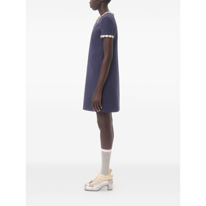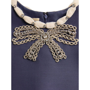 rhinestone embellishment Wool and silk embroidered dress
