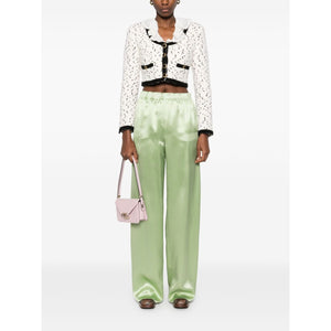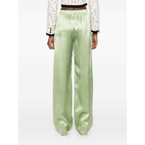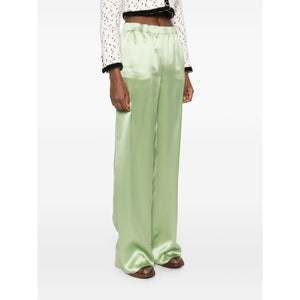 avocado green elasticated waistband two side welt pockets Silk wide-leg trousers Size and Fit - This piece fits true to size. We recommend you get your regular size. Model is 1,75m / 5ft 8in wearing size 40 (IT)