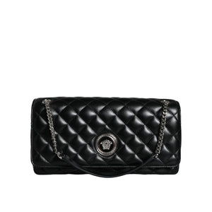 Versace Black Quilted Lambskin Leather Crossbody Shoulder Bag