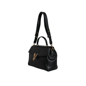 Versace Black Top Handle Grainy Calfskin Leather Crossbody Bag