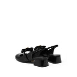 black calf leather patent finish low block heel elasticated slingback strap signature Medusa Head buttons bow detailing round toe branded leather insole leather and rubber sole Gianni Ribbon patent leather pumps Size and Fit - Heel 1,4 in / 3,5 cm
