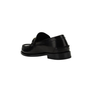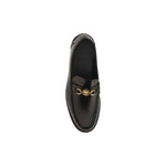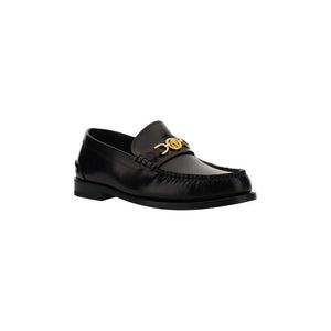 Versace’s leather Loafers combine classic elegance with iconic details. Featuring a slightly elongated round toe and a leather block heel, they feature a front tray embellished with a plaque featuring the iconic Medusa head, the house’s distinctive symbol. The logo-embossed insole completes the design, ensuring comfort and unmistakable style.