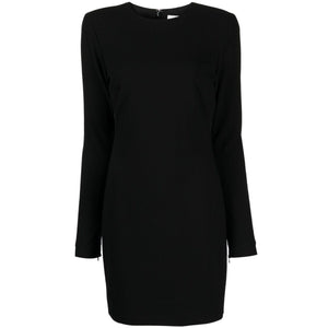 black virgin wool blend stretch-design crepe texture shoulder pads round neck concealed rear zip fastening long sleeves rear slit straight hem below-knee length Fitted mini dress Size and Fit - This piece fits true to size. We recommend you get your regular size. Model is 1,75m / 5ft 8in wearing size 8 (UK)