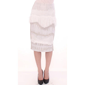 Arzu Kaprol White Acrylic Straight Pencil Skirt