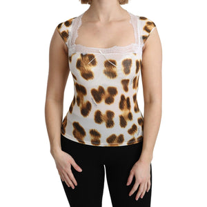 Roberto Cavalli White Brown Camisole Underwear Blouse