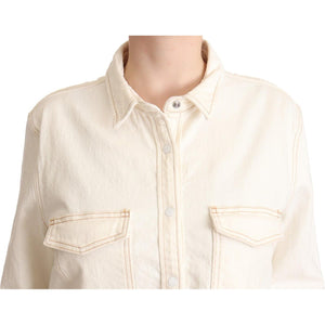 Levi's White Cotton Collared Long Sleeves Button Down Polo Top