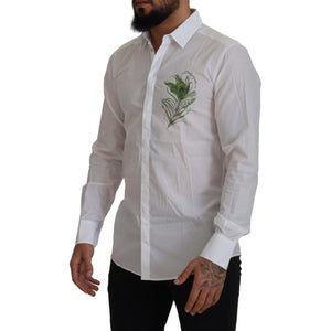 Dolce & Gabbana White Cotton Peacock Feather Formal GOLD Shirt