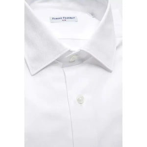 Elevate your wardrobe with the timelessly chic Robert Friedman Medium Slim Collar Shirt. With its sharp tailoring and pristine white color, this cotton masterpiece exudes sophistication and modern elegance. Crafted with the highest attention to detail, it’s the perfect blend of comfort and style for the suave gentleman. Make a bold statement at your next event with this quintessential addition to your collection.