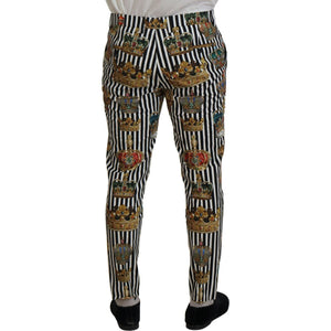 Dolce & Gabbana White Cotton Stretch Crown Trouser Pants