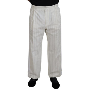 Dolce & Gabbana White Cotton Striped Formal Pants
