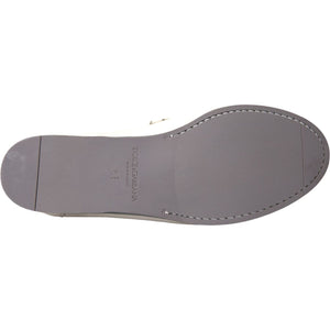 Dolce & Gabbana White Gray Leather Slip Mocassin Shoes Loafer