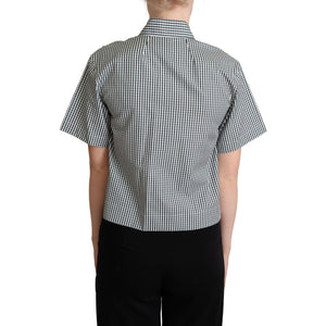 Dolce & Gabbana White Green Cotton Check Shirt Blouse Top
