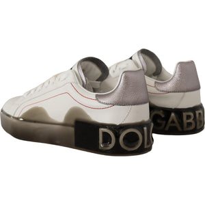 Dolce & Gabbana White Leather Shoes Womens Logo Portofino Sneakers
