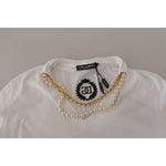 Dolce & Gabbana White Necklace Embellished Neckline T-shirt Top