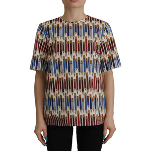 Dolce & Gabbana White Pencil Print Cotton T-shirt Blouse