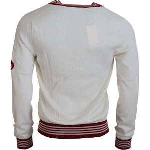Dolce & Gabbana White Red Knitted V-neck Pullover Sweater