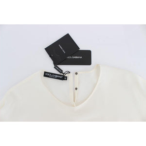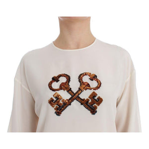 Dolce & Gabbana White Sequined Key Silk Blouse T-shirt Top