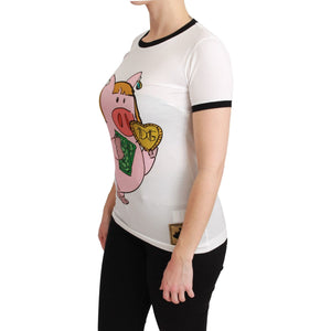 Dolce & Gabbana White YEAR OF THE PIG Top Cotton T-shirt