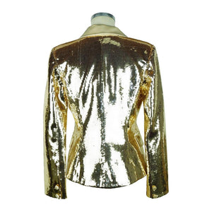Turn heads with this Elisabetta Franchi classic jacket, sparkling with double-breasted sequin embellishments. Crafted in Italy, this statement piece features a sophisticated pointed collar and two convenient front pockets, perfect for a dash of elegance in your evening ensemble.