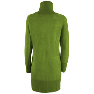 Yes Zee soft viscose blend stretch viscose turtleneck dress with lurex work, ribbed collar, cuffs and hem and logo plaque on front